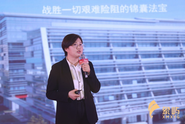 ▲象屿金控融资租赁事业部副总监邵华带来《创新发展 扬帆远航》的宣讲
