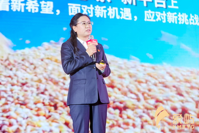 ▲象屿生化总经理助理,北安生化党支部书记、总经理徐秀萍带来《新地域 新挑战 新机遇 新发展》的宣讲