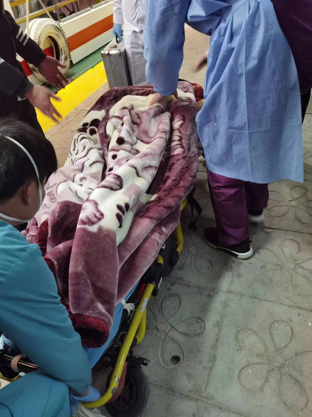 ▲将落水人员移交给医护人员