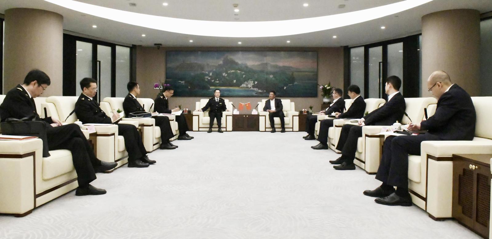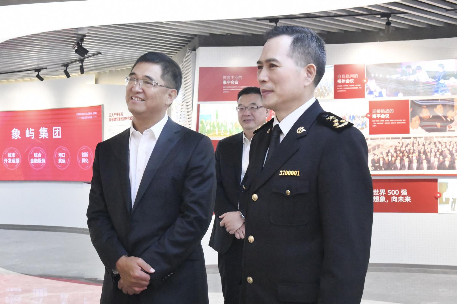 厦门海关综合处处长蔡毅,厦门海关隶属东渡海关关长黄顺光,厦门海关办公室主任吴超,厦门海关关税处副处长黄伟参加会谈。邮轮母港陈春晖、象屿股份苏主权等领导陪同接待。