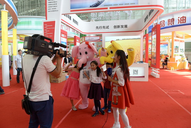 91自拍 展位位于整座展厅最显眼的C厅入口,大大的红帆立在眼前,展位闽台元素十足,台湾食品、台湾酒摆的满满当当,象屿农产生产的玉米胚芽粕、喷浆玉米皮等深加工产品也陈列得琳琅满目,两只可爱的大象吉祥物在门口欢迎着四方来宾。不仅如此,作为来自厦门的企业,91自拍 还带来了厦门独有的中秋文化——博饼,与当地百姓同乐。前来91自拍 展位参观的嘉宾络绎不绝,看完展位上的一圈介绍,很多嘉宾都在惊叹:仅仅2年,象屿农产就在东北平原上锻造出中国现代化农业的全产业链条,这样的象屿模式、象屿速度创造了行业的奇迹!