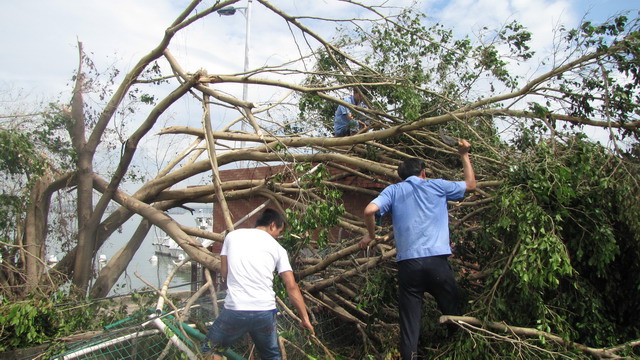 “莫兰蒂”的威力是巨大的,在其登陆前两个小时,港区电压开始呈现不稳定状态,时亮时暗。苏展是值守港区的电工,为了让安置在避险中心的数千船员有明亮的灯光,他不顾个人安危,冒着狂风暴雨前往配电室进行检查。路上被风刮起的铁板将衣服划破,所幸没有受伤。“电缆沟进水导致了短路,港区全部跳闸停电,路灯灯头也被摧毁。”苏展有些无奈,虽然如此,他仍坚守在配电室直至风雨渐收,确保了配电室设备没有受到破坏。
