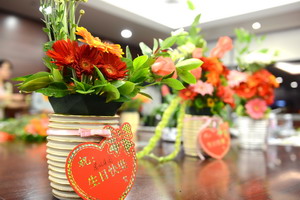 培训结束后,黄瑜勤老师评选出创意十足、心意十足的“十佳”插花作品,在培训室办了个小小的花展。女职工们还在心形的祝福卡片上写上为集团21周岁庆生的祝福语,在感谢集团关爱女职工生活的同时,表达了对集团发展、和公司共同成长的美好心愿。