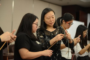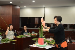 黄瑜勤老师示范插花并手把手教女职工们编织花叶
