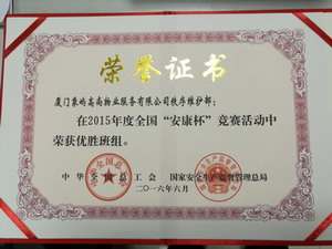 日前,中华全国总工会、国家安全生产监督管理总局联合下文表彰2015年度全国“安康杯”劳动竞赛优胜班组,象屿高尚物业秩序维护部获此殊荣。