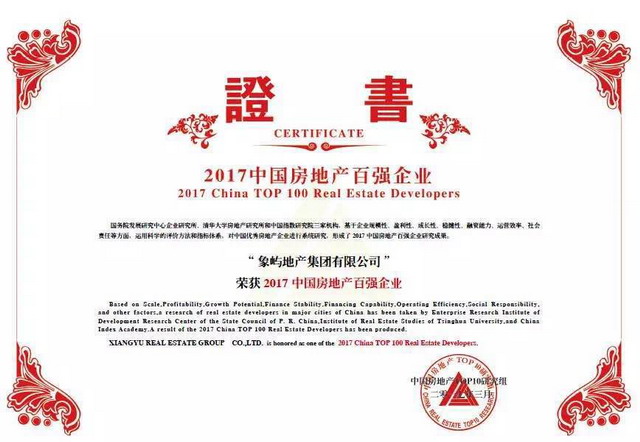 象屿地产荣获“2017中国房地产百强企业”