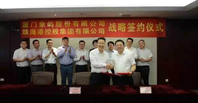 会谈结束后双方举行了合作签约仪式,陈方与欧辉生分别代表象屿股份和珠海港控股集团签署了《战略合作框架协议》。