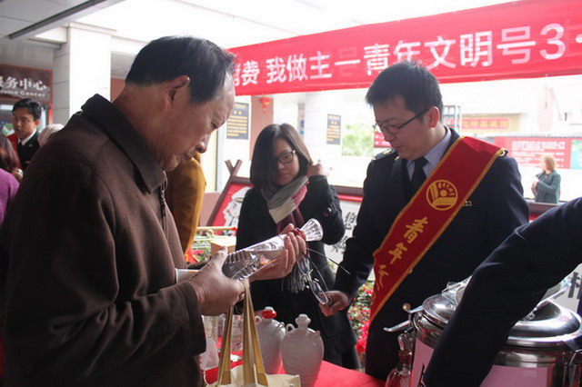 2017年315主题活动现场,象屿发展运营中心联合大嶝小镇青年文明号联创共建团队,在大嶝市场设置烟酒、工艺品、食品三个鉴假专区,向游客讲解识假辨假的方法,吸引不少游客前来咨询了解。该活动已连续举办了五届。