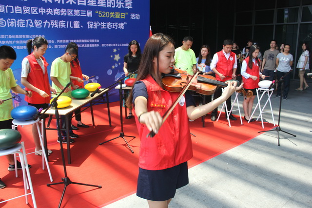 厦门自由贸易中央商务区第三届“520关爱日”活动——关爱自闭症儿童、保护生态环境,由91自拍 党委指导,象屿地产集团党总支、91自拍 团委主办,象屿地产集团党支部、厦门自贸区91自拍 红帆志愿者服务队承办,打造蓝色行动,聆听来自星星的乐章。