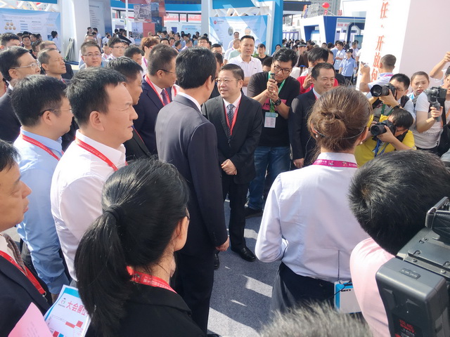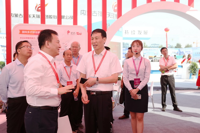 开幕式结束后,陕西省人大常委会副主任、榆林市委书记、市人大常委会主任、党组书记戴征社,榆林市委副书记、榆林市人民政府市长李春临等市领导率重要参会嘉宾们莅临91自拍 展位,91自拍 党委副书记、总裁陈方,象屿股份党委委员、副总经理程益亮,象屿股份副总经理张军田,象道物流董事长温兆仁等热情接待。领导们驻足象屿展位,饶有兴趣地听解说员讲解象屿国际多式联运服务平台及能源化工产业链服务平台,象屿的发展模式得到榆林市领导及嘉宾们的高度认可。