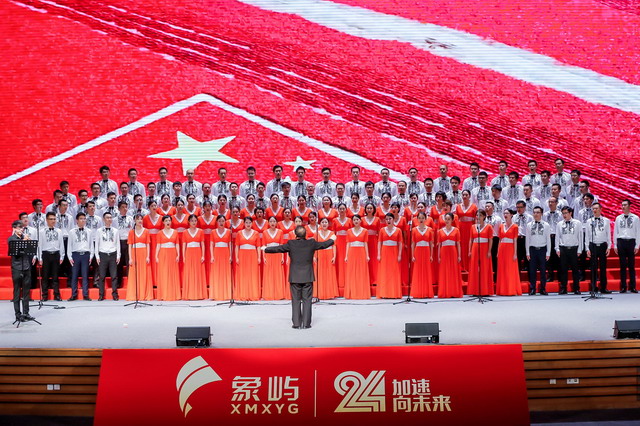 全国各地的象屿人与共建单位举办爱国主义歌曲合唱会演,赞美祖国,祝福厦门。