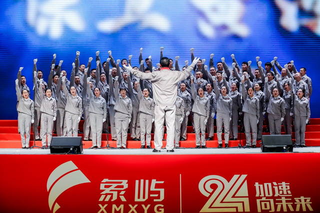 企业与国家命运紧密相连,祖国的繁荣昌盛为每个人的梦想提供了广阔的舞台,祖国的和谐稳定也为每个人的梦想提供了蓬勃生长的空间。《祖国不会忘记》《我的中国心》《中国梦!飞起来》《今天是你的生日》《走向复兴》……一首首澎湃的爱国主义旋律在红色舞台上飞扬,台上台下千名象屿人和共建单位的党员干部群众手舞红旗,共同辉映成一片红色的海洋,展现出人民对党、对祖国的深厚感情,呈现出一派积极向上、开拓进取的精神风貌。