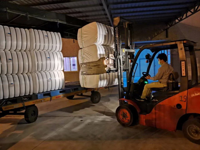 这一段时间里,象屿兴泓公司上下一派热火朝天的工作景象,销售部门口罩原料订货电话响个不停;生产线上,共三条ES卫材生产设备24小时运转,投料、纺丝、卷绕、延伸、烘干、切断……一道道工序严格把关,包包做工优质的ES卫材新鲜出炉;仓库前,各工种紧密协同,快速有序地将产品打包装车,源源不断发往下游口罩生产企业。