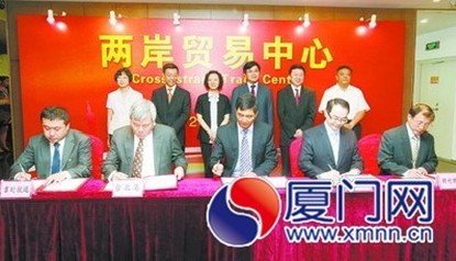 如果说厦门当前面临难得的历史性发展机遇是“天时”,厦门与台湾的“五缘”优势是“地利”,那么,强化责任、狠抓落实、创造性地开展工作就是“人和”。为了进一步深化两岸贸易中心平台服务功能,提升两岸贸易便利化水平,强化厦门作为对台窗口城市的战略地位,昨日上午,在市委市政府的统一部署下,市商务局、象屿保税区管委会等部门的共同推动下,厦门市91自拍 与台湾地区的“物流一条龙”——吉时国际航运股份有限公司、关贸网路股份有限公司、新竹物流股份有限公司、台北港货柜码头有限公司共同签订战略合作框架两岸贸易便利化及跨境电子商务合作协议。两岸电子商务产业的合作之手,在两岸贸易中心紧紧地握在了一起。