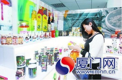两岸贸易中心的台湾产品琳琅满目,吸引市民购买。