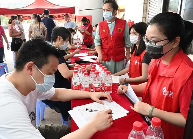 市民踊跃参与无偿献血活动,汇聚爱的洪流。(黄晓珍 摄)