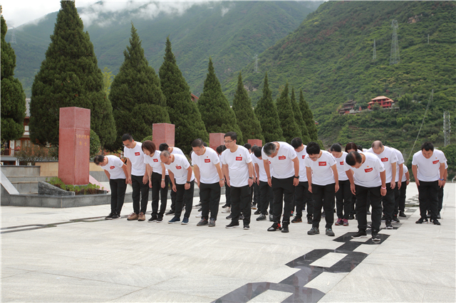 缅怀革命先烈,致敬红军精神。怀着肃穆敬仰之情,“挑战之旅”队伍来到红军飞夺泸定桥纪念碑广场,敬献花篮,向纪念碑三鞠躬,对红军烈士表达深深的敬意和无尽的怀念。