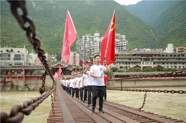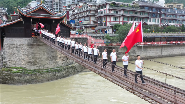 飞夺泸定桥,是红军长征路上的关键一仗,是一场比智慧、比毅力、比勇气的战斗。“挑战之旅”队伍在党旗和支线旗的引领下,行进在铁索横江的泸定桥上,一幅幅战斗画面在脑海中浮现,一声声呐喊和枪炮声犹在耳畔回荡,激发起象屿建设集团团队干事创业、勇于挑战的工作热情。