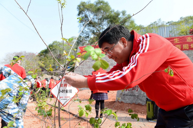 挖掘树坑,挥铲培土,踩实固苗,拎桶浇水……每个步骤齐心协力、一丝不苟,再亲手挂上认养标牌,留下“十年树木”的绿色牵挂。象屿人和共建单位参与者纷纷以实际行动践行习近平生态文明思想,牢固树立“绿水青山就是金山银山”的理念,为东坪山这个鹭岛“绿肺”、生态客厅添绿增彩。
