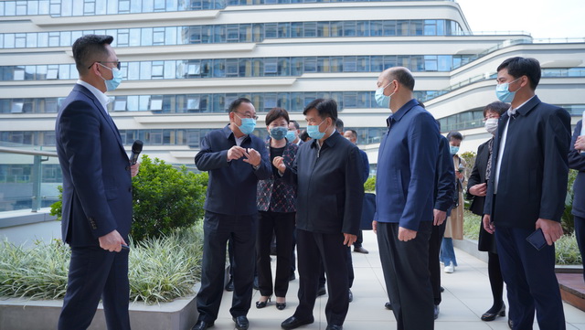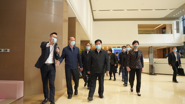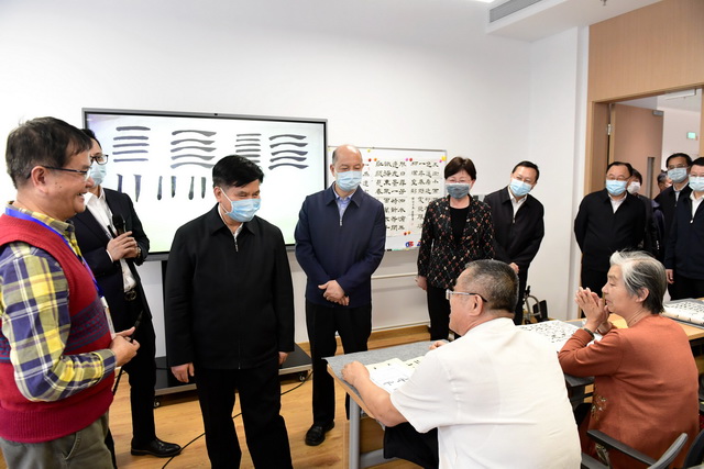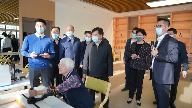 在听取项目介绍后,调研组一行参观了休闲文化配套空间、护理楼、养老公寓等区域,对象屿慈爱的长者入住进展、医养结合、慈爱学院课程开设、疫情防控等整体情况及运营成果进行深入了解,重点关注了包括“智慧一卡通”、全院可视化管理系统、智能餐盘等在内的智慧化养老服务体系,并给予充分肯定。