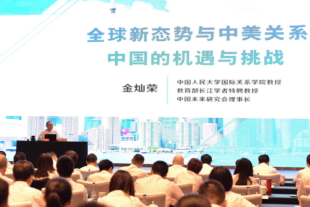 为更好把握“百年未有之大变局”,加强对国际形势、宏观环境的研判与应对,本次会议还邀请中国人民大学国际关系学院副院长金灿荣教授带来《全球新态势与中美关系:中国的机遇与挑战》专题讲座。金教授以高站位和广视野,深刻分析国际热点问题和世界经济重塑的基本趋势,从新的国际格局、新的现代化模式、新的工业革命、新的全球治理等视角解析“百年未有之大变局”,提出对中国企业未来发展的建议。