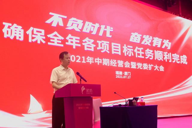 2021年中期经营会暨党委扩大会在厦门召开,集团党委和经营班子,集团本部、行业公司及投资企业相关高管、非经营班子的党支部书记等参加会议。