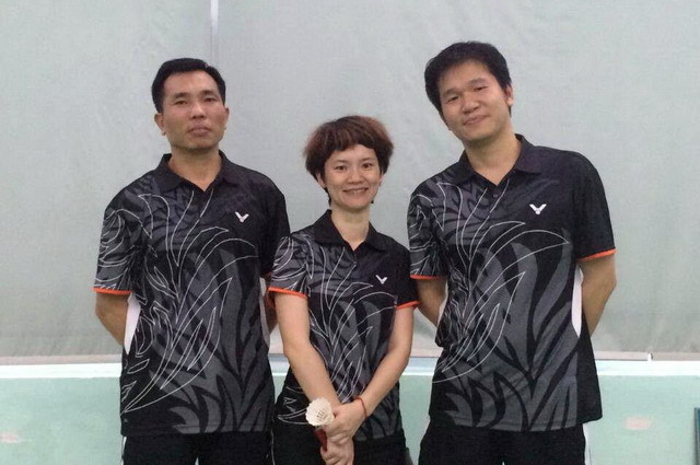 集团公司代表队队员合影(左起傅根海、胡秋云、陈炳忠)