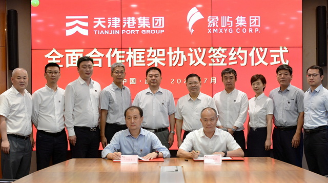 象屿股份党委副书记、副总经理齐卫东,象屿速传总经理、象屿股份物管中心总监孙刚,天津象屿副总经理(主持工作)马素梅;天津港集团物流经营中心主任、物流公司总经理刘鹏,天津港集团业务经营中心主任张炜杰,天津港国际物流公司总经理赵毅等出席签约仪式。