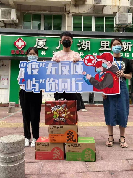 捐赠的消暑饮品等慰问物资,就送进湖里区辖内56个社区,交到防疫志愿者手中。