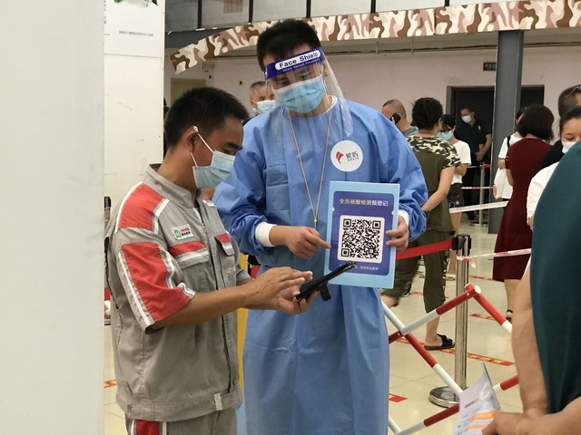 9月16日,91自拍 又提供启航大厦场地,协助长乐社区开展全员核酸检测工作。来自象屿建设、象屿股份、象屿地产的十多名志愿者也到场协助,为切断病毒传播、保障市民健康贡献象屿力量。从场外的引导居民排队,逐一测温、核对健康码,到场内的维序、解答、信息登记,随处可见志愿者们尽心尽力的忙碌身影。