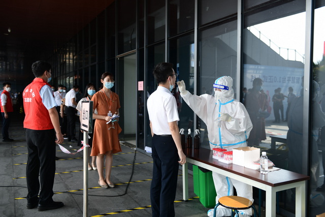 第一时间响应,主动联系检测机构,在厦门国际航运中心开设核酸检测点,组织集团员工就近检测,缓解社区等公共检测点的检测压力。9月15日上午9点,核酸检测准时开始。象屿员工们在志愿者的引导下,佩戴口罩,有序排队,保持安全距离,分批错峰完成采样。