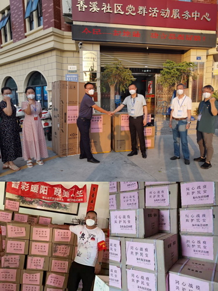 已第一时间伸出援手,采购电冰箱、洗衣机、打印机等电器设备,为五显镇香溪社区一线工作者改善工作、生活条件;捐赠大量大米、油等物资,帮助西柯镇埭头社区、大同街道古庄村解决居家观察人员和特困人员的生活保障。