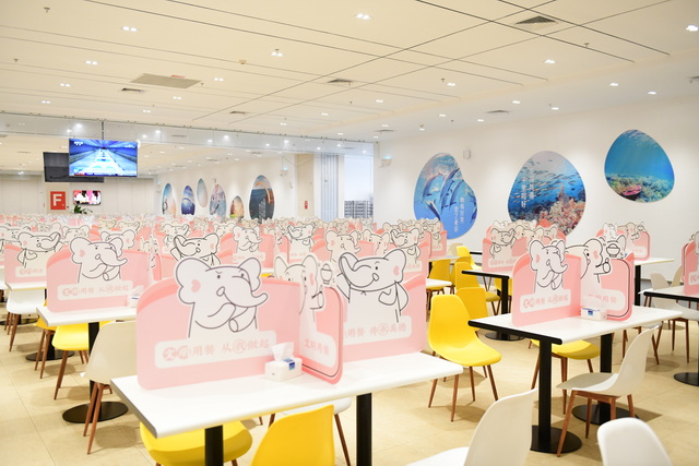 员工餐厅位于厦门国际航运中心C栋一层,建筑面积超过4000平方米,可容纳上千人同时就餐。