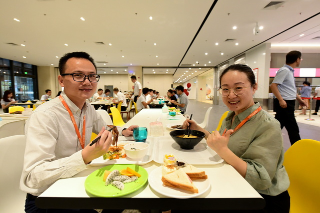 它美在膳食健康。餐厅委托世界500强餐饮服务企业康帕斯悉心运营,严把食品安全关。集团行政中心及各公司代表还组成膳食管理委员会,对餐厅的食品安全、环境卫生、餐品质量等进行监管,并每天向员工公示食材验收情况。