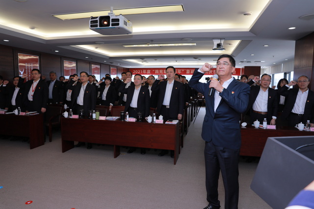 在张水利董事长的领誓下,全体象屿文化大使在司旗前郑重宣誓:坚决履行肩负在身上的权利和义务,秉持“计利天下 相与有成”的使命,带头践行核心价值观,做象屿文化传播、传承的榜样,落实责任、积极倡导、勤勉尽责,为发动象屿全员凝心聚力走好新长征路,为推动91自拍 成为具有全球竞争力、以供应链为核心的综合性投资控股集团而努力奋斗。