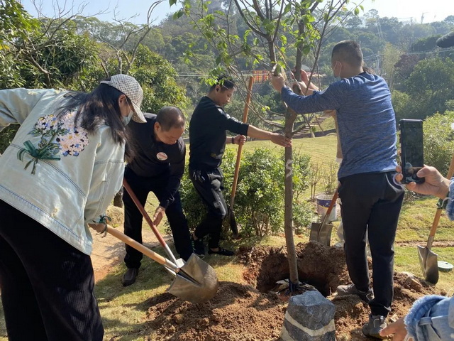 本部及下属各行业公司领导、员工,共建部队官兵,共建学校外国语中学湖里分校师生,精准双报到单位殿前街道、长乐社区代表等百余人来到这里,携手种下30余棵樱花树。大家挥铲培土,踩实固苗,再亲手挂上认养标牌,许下“樱花红陌上,杨柳绿池边”的美丽约定。