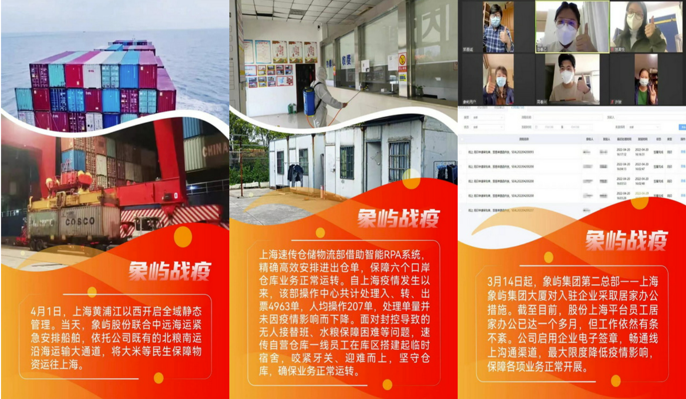 城市按下“暂停键”,但象屿上海区域业务不停、服务不停。沪上象屿人排除万难,共克时艰,绘就一幅幅满载着坚守、温暖与大爱的战疫画卷。支撑他们日夜拼搏的,除了象屿大家庭的鼎力支持,更有敢闯敢拼、艰苦奋斗、坚韧不拔的象屿草根精神,以及“业务数据化、运营平台化、管理智能化”的数字化转型成果。