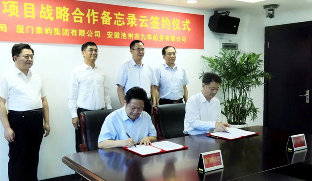 围绕集团优势产业挖掘招商项目,深化与九华船务的良好合作,实现重大招商项目签约落地。一方面,集团发挥产业协同优势,为九华船务提供综合性解决方案,旗下船舶制造企业象屿海装接受九华船务委托建造6艘8万吨级散货船,旗下象屿金控为其提供配套综合金融服务;另一方面,集团协助对接厦门港口管理局沟通相关政策配套,助力九华船务落户厦门。