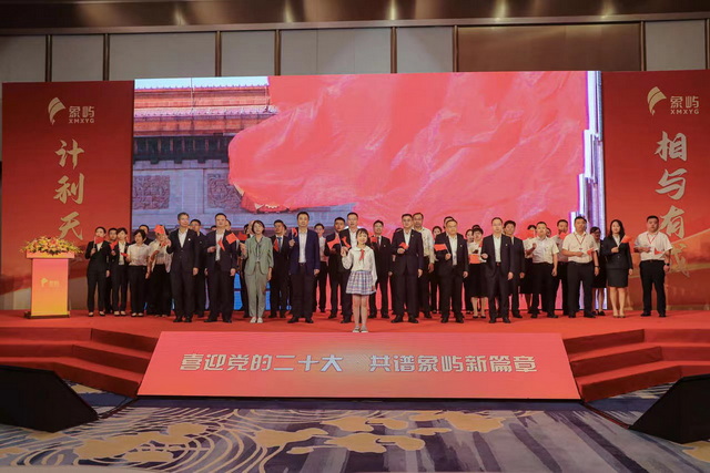 党委副书记、总裁邓启东,党委副书记、工会主席邵蕰默,副总裁林志勇及200余名周边区域公司员工代表现场聆听,全球各地象屿员工也以观看视频直播的方式“云参与”。