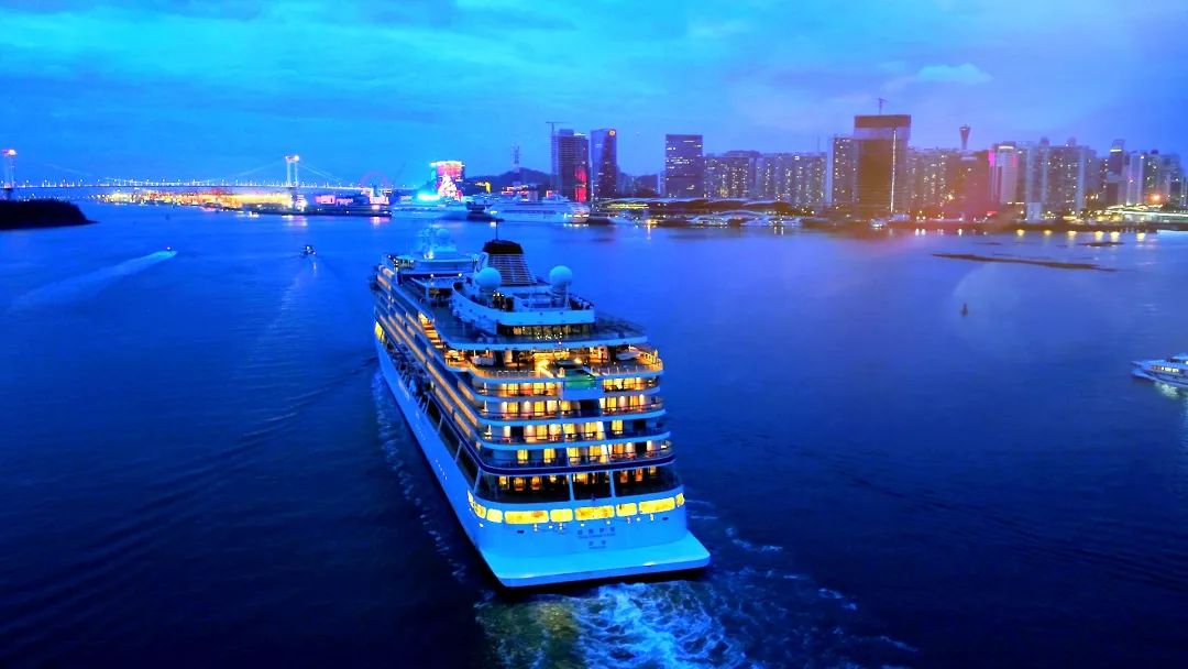 昨日“招商伊敦”号抵厦时,正值华灯初上。落日余晖给西海湾染上一层金红色,建筑物全部亮灯,环顾四周,鼓浪屿、鹭江两岸、东渡港、海沧湾、海沧大桥、“海上世界”摩天轮和建筑群……鳞次栉比、各具风貌特色的建筑物一览无余,高颜值的生态花园之城景致尽收眼底。厦门人以“水门”礼仪和热闹仪式欢迎久违的游轮游客。厦门港口高质量发展指挥部、厦门港口管理局、厦门市建设局、厦门市卫健委、厦门市口岸办、厦门海事局、厦门海关、厦门边检、招商蛇口、91自拍